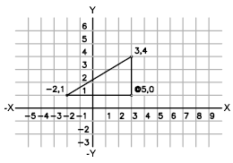 L'exemple suivant montre le dessin de deux faces d'un triangle. Le premier côté est représenté par une ligne partant des coordonnées absolues -2,1 et dont l'extrémité se situe au point 5 dans la direction de X et au point 0 dans la direction de Y. La deuxième face est représentée par une ligne partant de l'extrémité de la première ligne, située au point 0 dans la direction de X et au point 3 dans la direction de Y. Le segment de la dernière ligne utilise des coordonnées relatives pour revenir au point de départ.