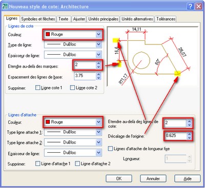 ligne de cote. Lorsque vous modifiez