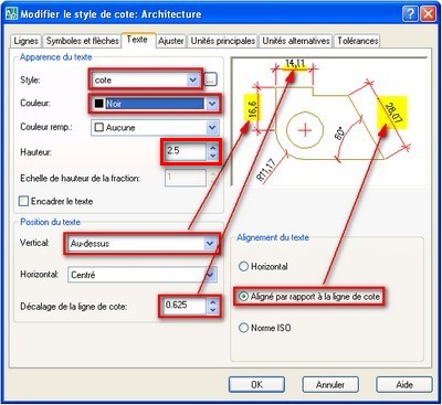 cote par rapport à la ligne de cote.