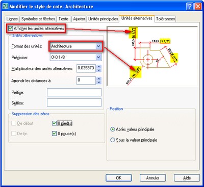 au texte de cote des unités de mesure