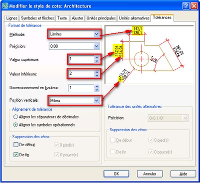 format et la précision des cotes